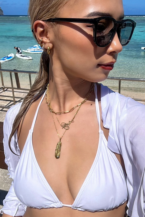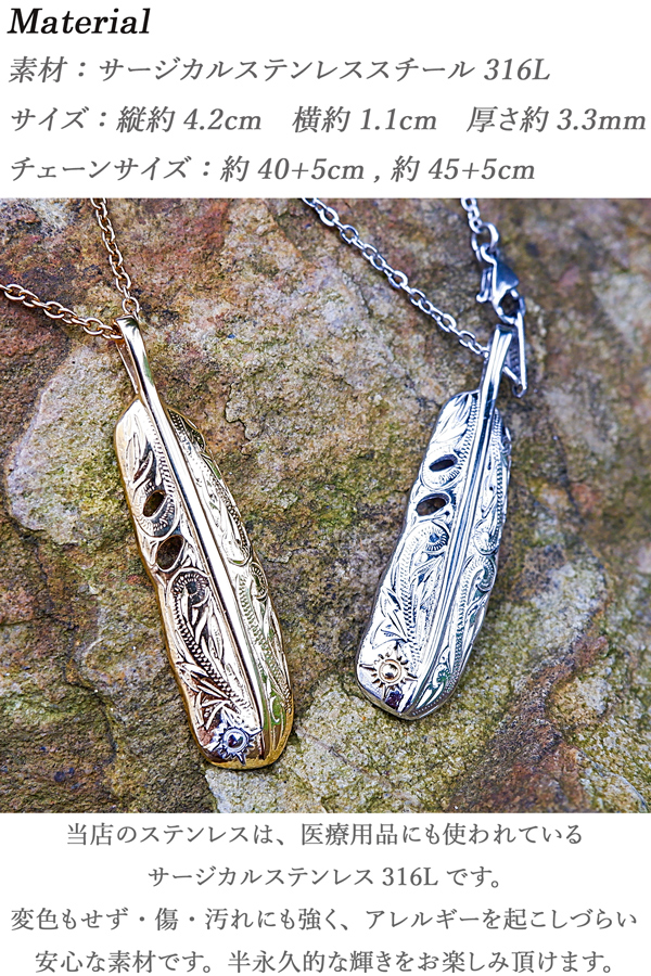ハワイアンジュエリー ネックレス ステンレス フェザー 羽 太陽 金属アレルギー チェーン付き サージカル ステンレス ギフト インスタ sale