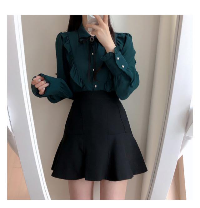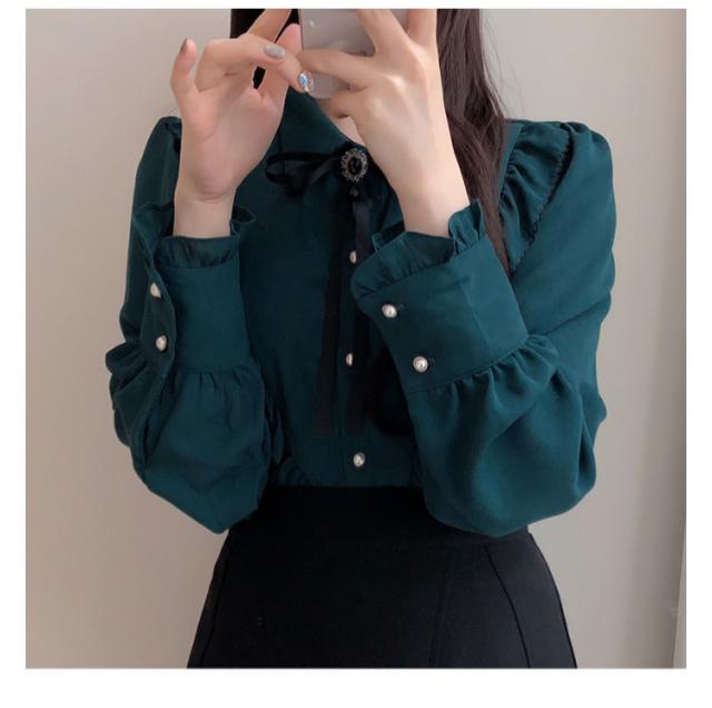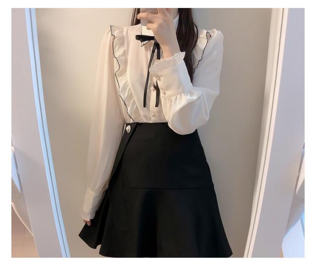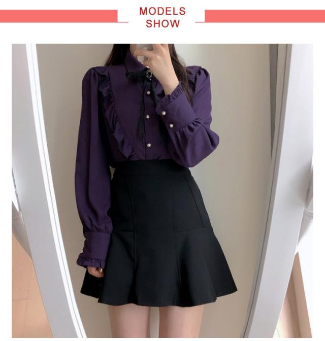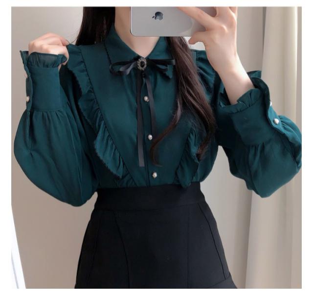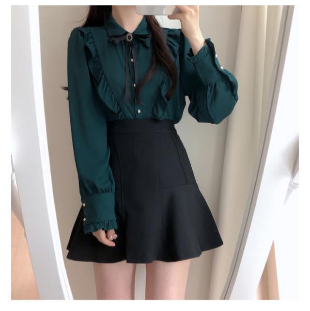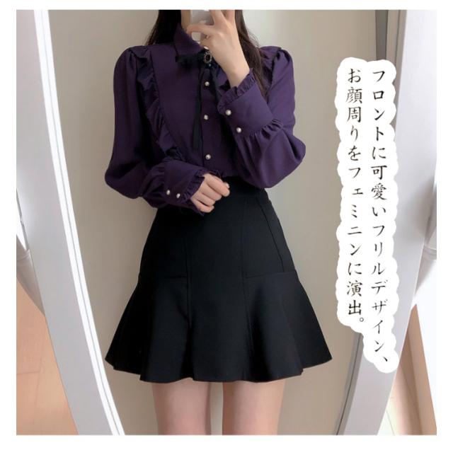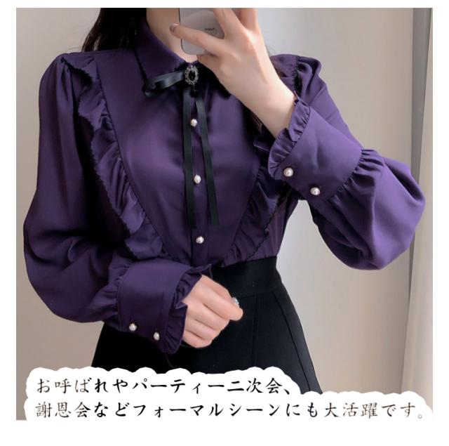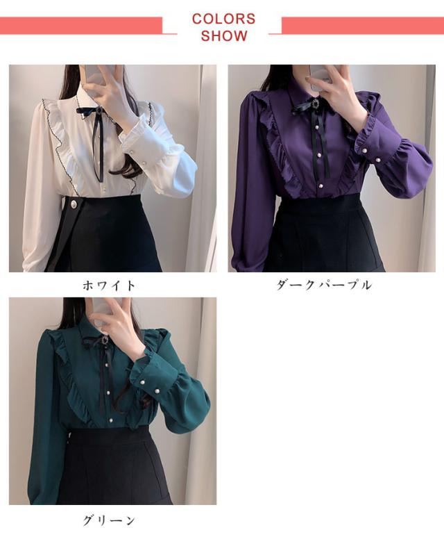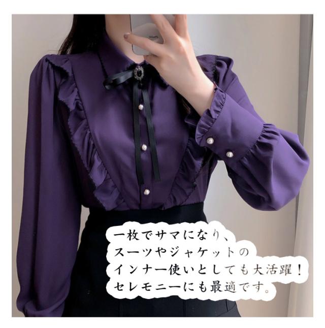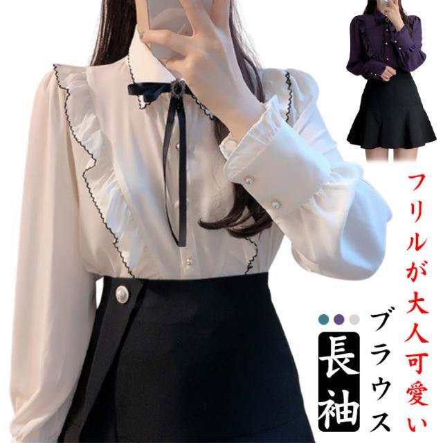 ブラウス フリル レディース トップス 長袖 フリルネック 無地 かわいい 春秋 ガーリー 可愛い OL 大人女性 きれいめ きれいめ お洒落 通勤 おしゃれ 大きいサイズ シャツ シンプル フォーマル 襟フリル 送料無料