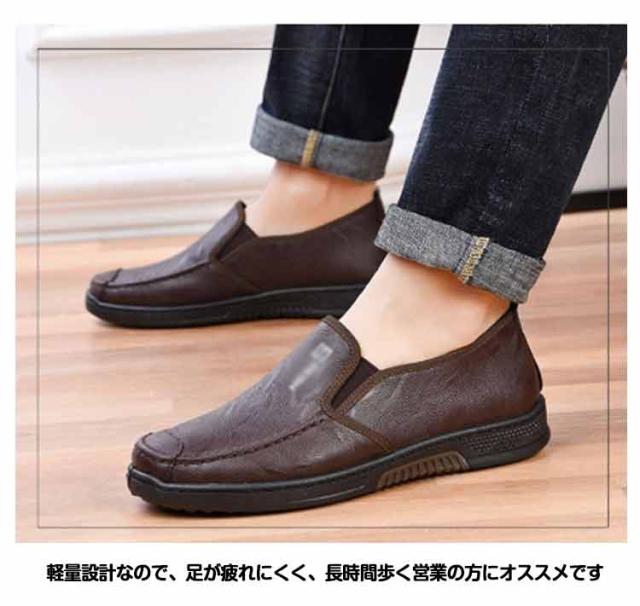 ビジネスシューズ レザー 革靴 スリッポン メンズ スリッポン コンフォートシューズ ビジネスシューズ 紐なし 撥水加工 3E ワイド ゆったり 軽量 軽い 低反発インソール 滑りにくい サイドゴア 通勤 通学 結婚式 防滑 紳士靴 送料無料