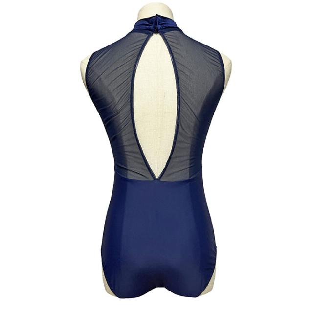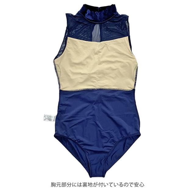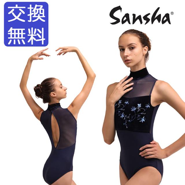 バレエ レオタード 【サンシャ】50BA1151P (Rapture) ラプチャー ベロア 刺繍 ハイネック レオタード バレエ ジュニア・大人用 バストポケット付き 袖なし ホルターネック メッシュ おしゃれ ストレッチ 伸縮 花柄 レッスン 練習 着 ネイビー 紺 145 150 155 160 165 170