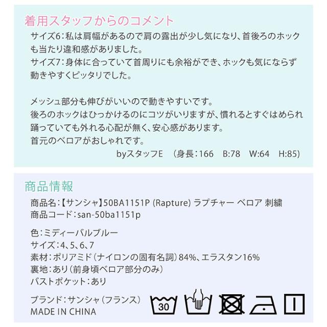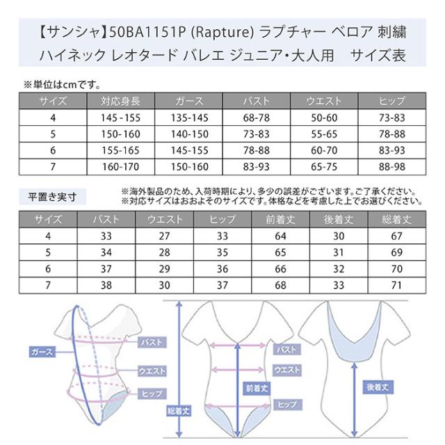 商品名:【サンシャ】50BA1151P (Rapture) ラプチャー ベロア 刺繍 ハイネック レオタード バレエ ジュニア・大人用 バストポケット付き