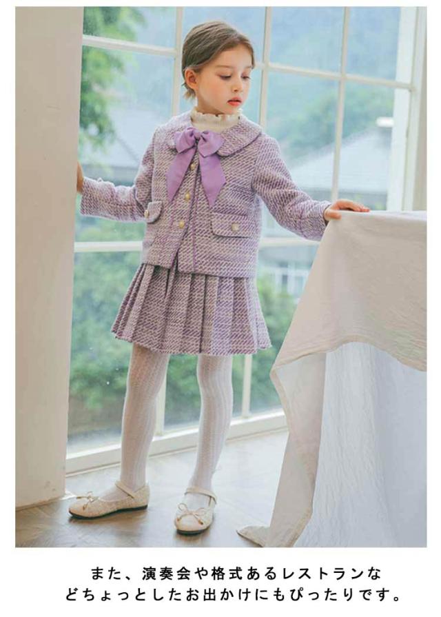フォーマルスーツ 女の子 フォーマル ジャケット スカート ツイードジャケット アンサンブルスーツ プリーツスカート スカートスーツ 上品 入学式 卒業式 発表会 お呼ばれ 結婚式 正統派 卒園式 100cm 110cm 120cm 130cm 140cm 150cm 160cm 170cm
