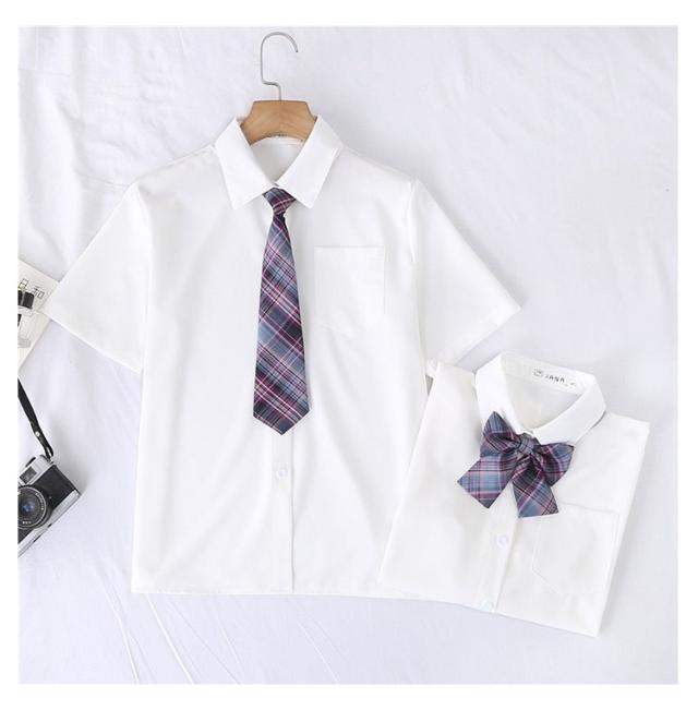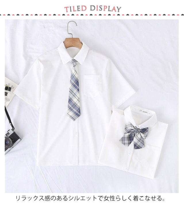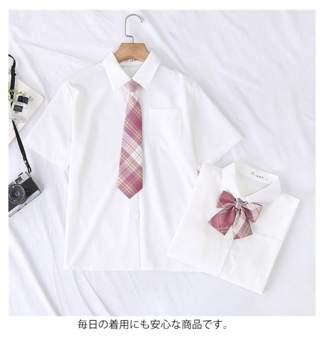 スクールシャツ リボン付き ネクタイ付き 半袖 女の子 制服 学生服 レディース スクールウェア 白シャツ ワイシャツ 入学式 卒業式 JK制服 トップス 通学 女子 学生 中学生 高校生 小学生 女子高生 スクールブラウス 白 ホワイト シャツ