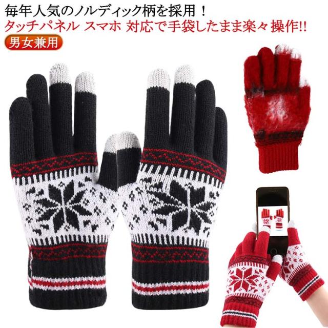 手袋 メンズ レディース ニット スマホ タッチパネル 手ぶくろ ノルディック柄 通学 手袋 レディース 5本指手袋 男女兼用 ユニセックス おしゃれ カジュアル 北欧 暖かい あったかい 防寒 秋 冬 厚手 通勤 通学 自転車 おでかけ ぽか活 温活 もこもこ ニット手袋 送料無料