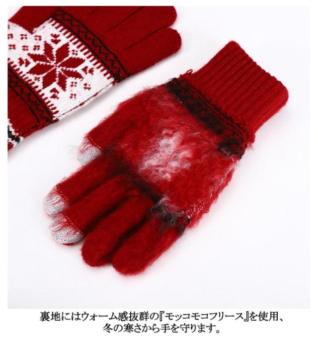 | 毎年人気のノルディック柄を採用! タッチパネル スマホ 対応で手袋したまま楽々操作!! 裏地にはウォーム感抜群の『モッコモコフリース』を使用、冬の寒さから手を守ります 大切な方へのちょっとしたプレゼントとしても大変好評をいただいています。 | |