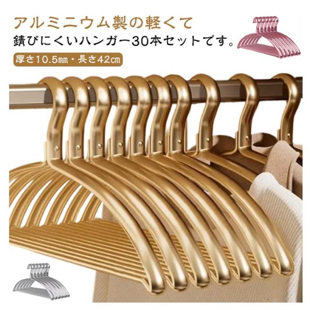 30本セット アルミハンガー ゴールド 太め 極太 すべらない 跡がつかない アルミ ハンガー アーチハンガー 滑らない 錆びない 軽量 肩 滑り止め 洗濯ハンガー 物干しハンガー 型崩れしない 変形にくい 曲がらない ハンガー 【送料無料】