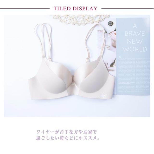 | ノンワイヤーなのに驚くほど盛れる、めちゃ盛りブラ!! 厚めのパッドと脇から寄せた胸をしっかり固定する脇高設計で、バストをボリュームUP&驚きのくっきり谷間メイク! スムーズな質感で縫い目がなく、ピタTにも響きにくいシームレスブラジャーです。 ワイヤーが苦手な方やお家で過ごしたい時などにオススメ。 | |