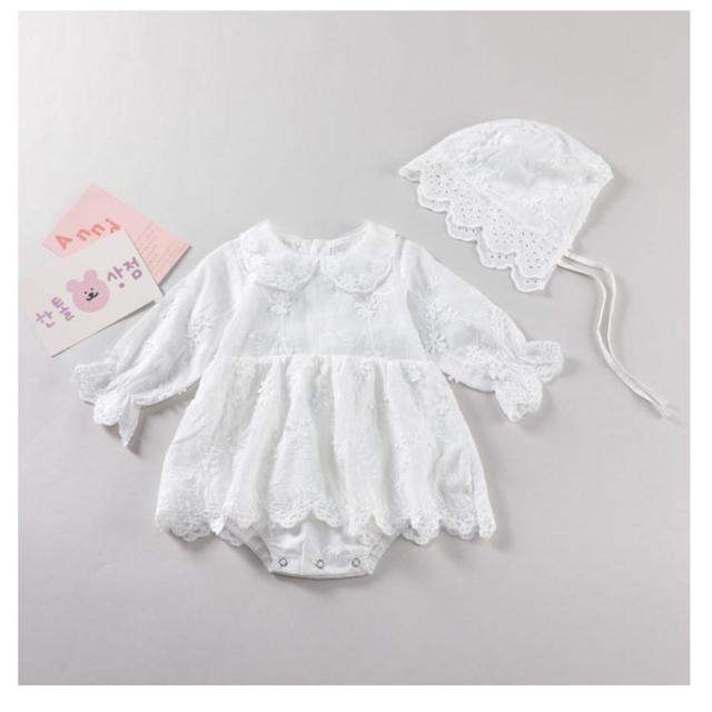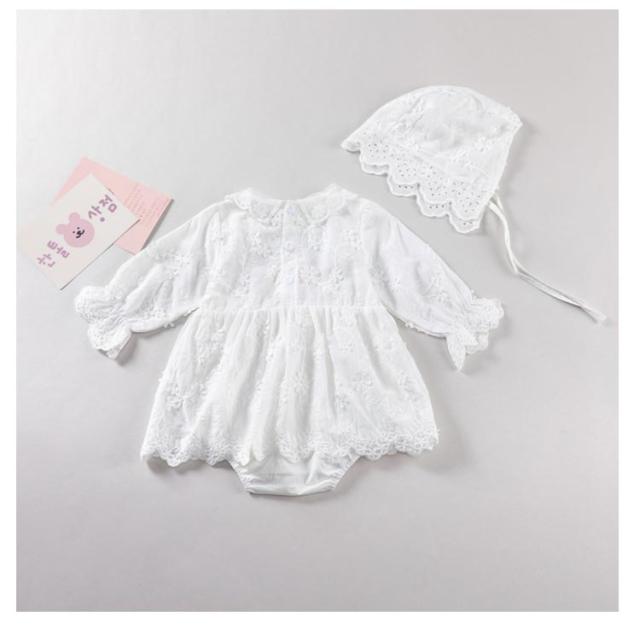 ボンネット付き 赤ちゃん 新生児 退院 刺繍 ロンパース お宮参り 女の子 ふんわり オーバーオール セレモニードレス 出産祝い ベビー ボンネット付き 百日祝 晴れ着 写真撮影 プレゼント お食い初め ギフト 100日祝 御祝 お祝い 韓国子供服