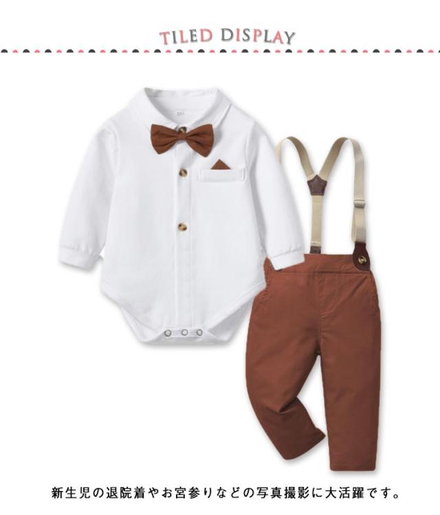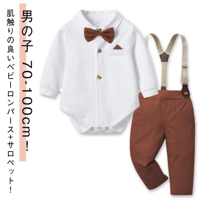 | 【男の子】 肌触りの良いベビーロンパース+サロペット! 70-100cm! 新生児の退院着やお宮参りなどの写真撮影に大活躍です。 | |