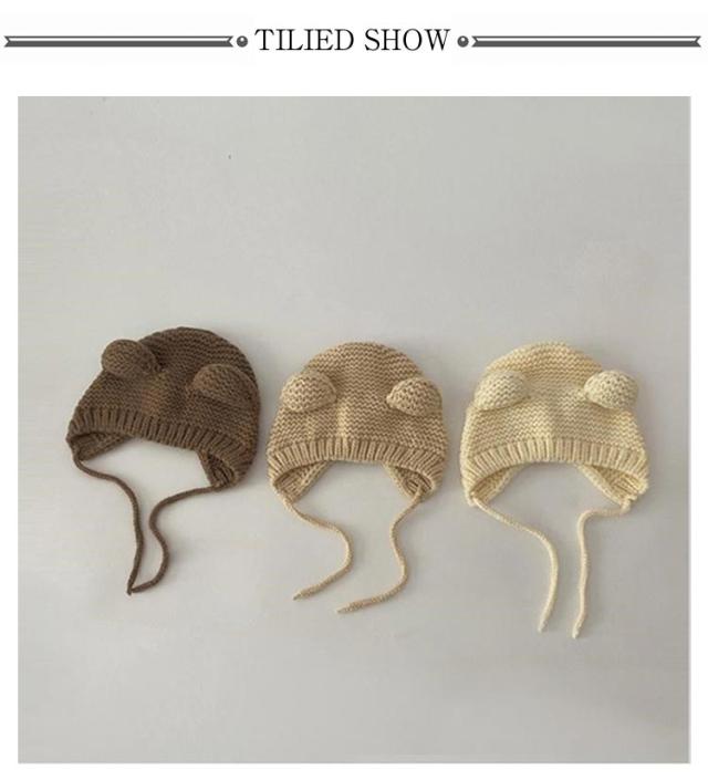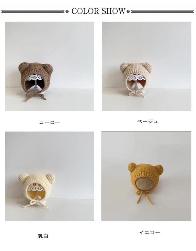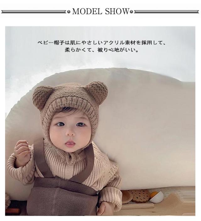くま耳 赤ちゃん 子ども帽子 ニット帽 くま ニット くま ニットキャップ キッズ あったか 耳当て キッズ帽子 ベビー帽子 ベビー ニット帽 頭優しい 耳保護 耳付き あごひも 伸縮性高く 紐付き 保温 防寒 寒さ対策 通園