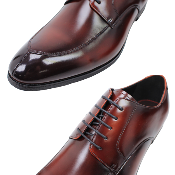 | 商品の特徴 | ドレッシーでオシャレな「大人の雰囲気」をかもしだすお勧めのハイクオリティな1足!素材を厳選して国内産で丁寧に仕上げられた高級感漂う大人のビジネスシューズです。美しい3Eワイドラストを採用し、アッパーには天然皮革を使用していますので、履き込むごとに足に馴染みます。イタリアンスタイリッシュを具現化した程よいロングノーズの上品な被せモカでフォーマルなどにも重宝します。 | |