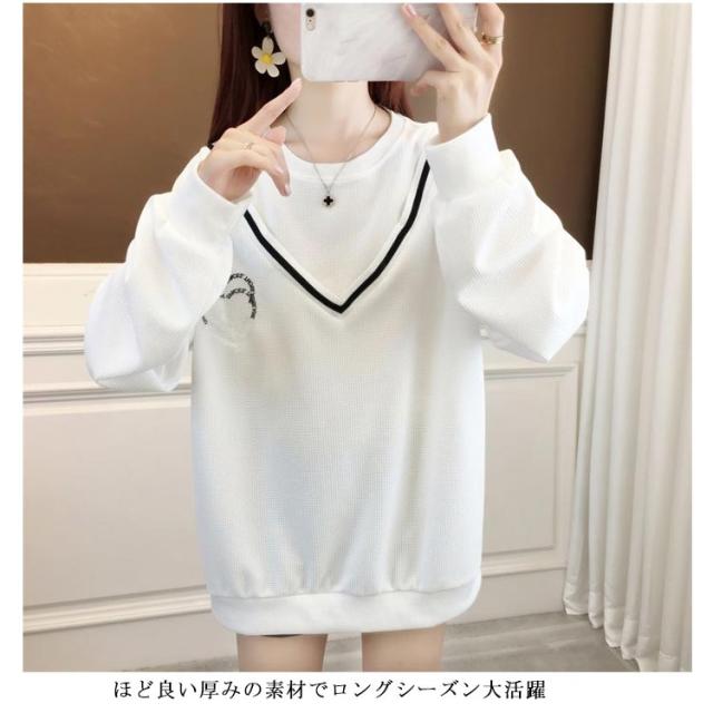 ゆったり オーバーサイズ 薄手 トレーナー レディース クルーネック 大きいサイズ カットソー ビッグシルエット おしゃれ トップス 長袖 ゆったり 冷え対策 プルオーバー シンプル 無地 パーカー クルーネック 体型カバー 春 秋 韓国 かわいい