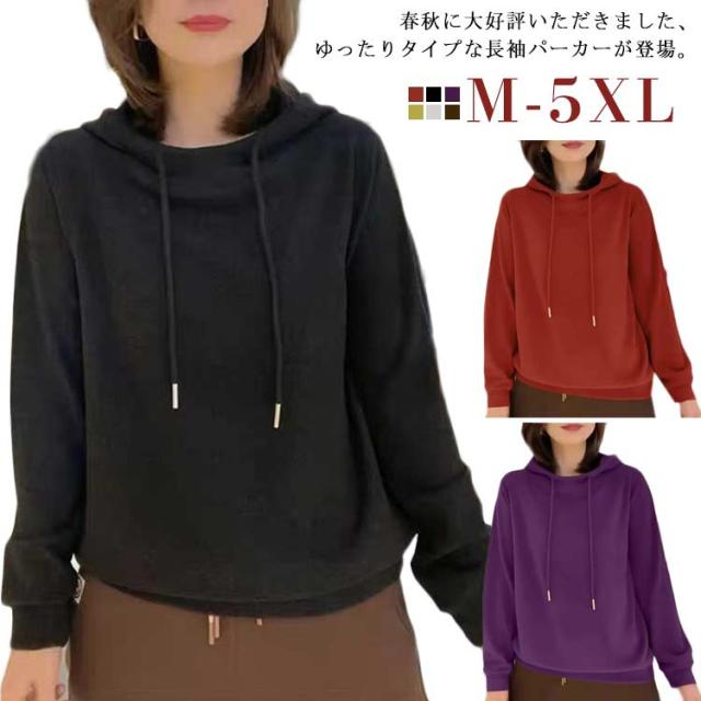 プルオーバー パーカー きれいめ 部屋着 レディース パーカー ロング丈 スウェット 長袖 フード ルームウェア オーバーサイズ 春 秋 おしゃれ トレーナー 韓国 M-5XL 大きいサイズ ゆったり 学生 通勤