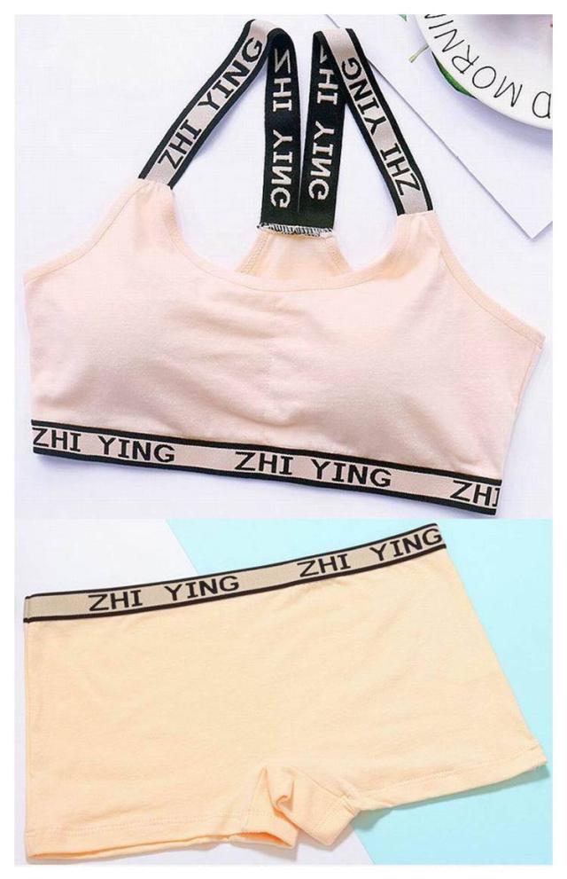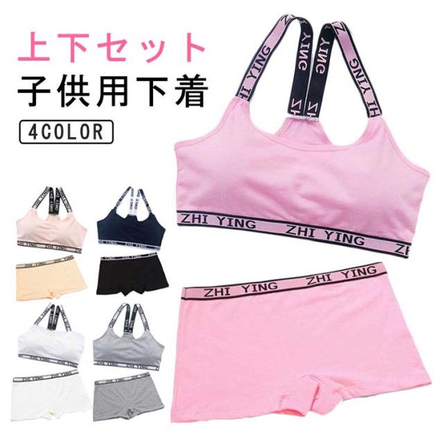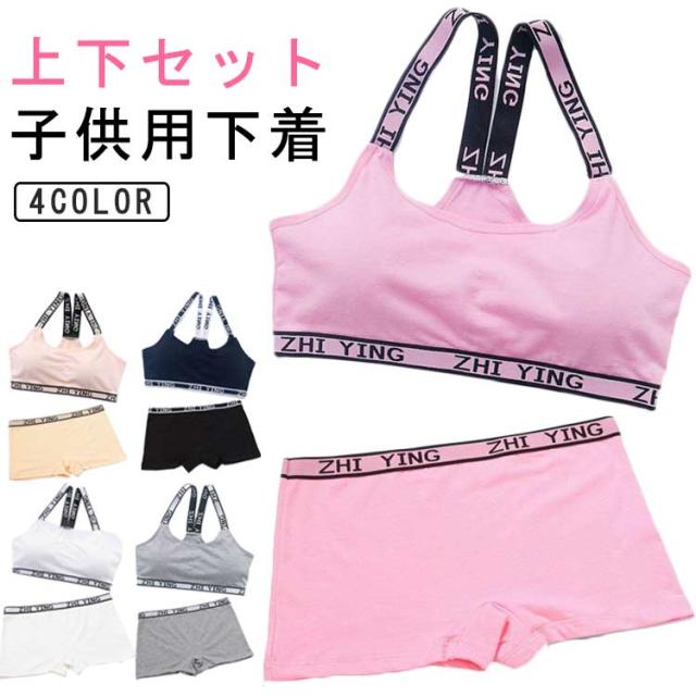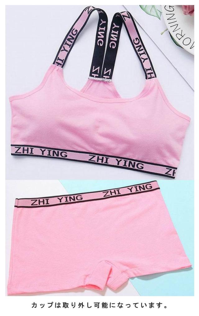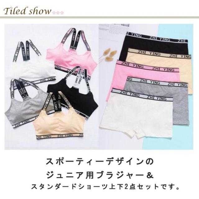 スポーツブラ ノンワイヤーブラ ショーツセット 英字柄 ジュニアブラジャー ボクサーパンツ 上下セット リボン 学生 中学生 高校生 ジュニア向け フィットネス シンプル 高校生 運動 トレーニング ベストタイプ 子供 小学生