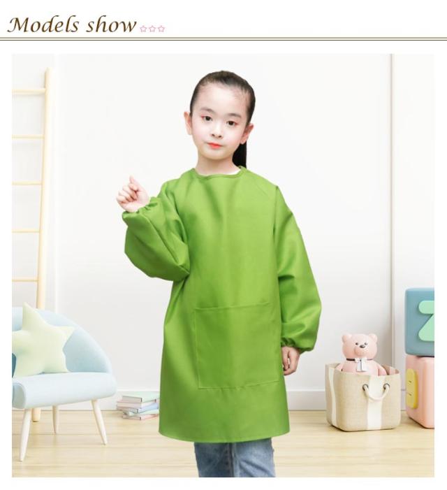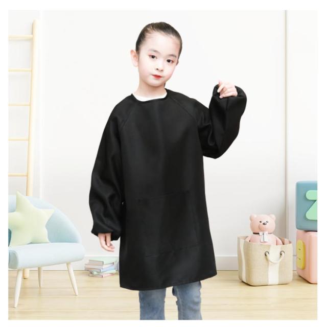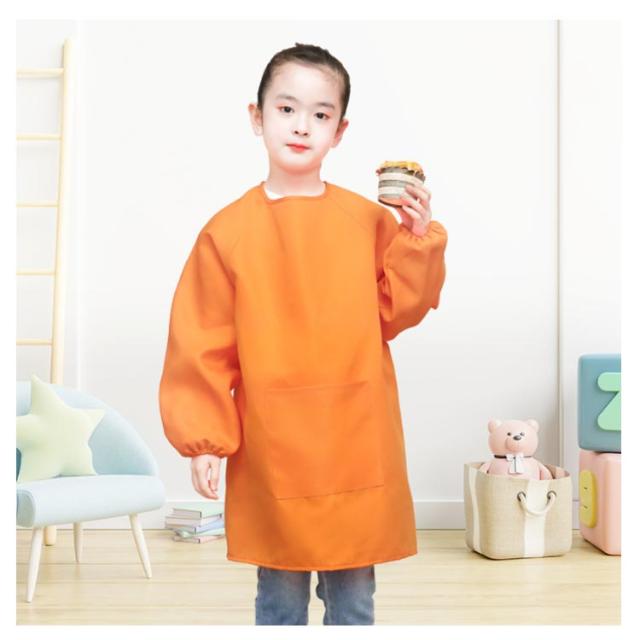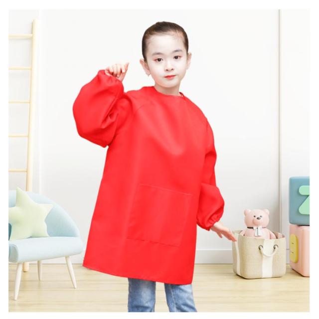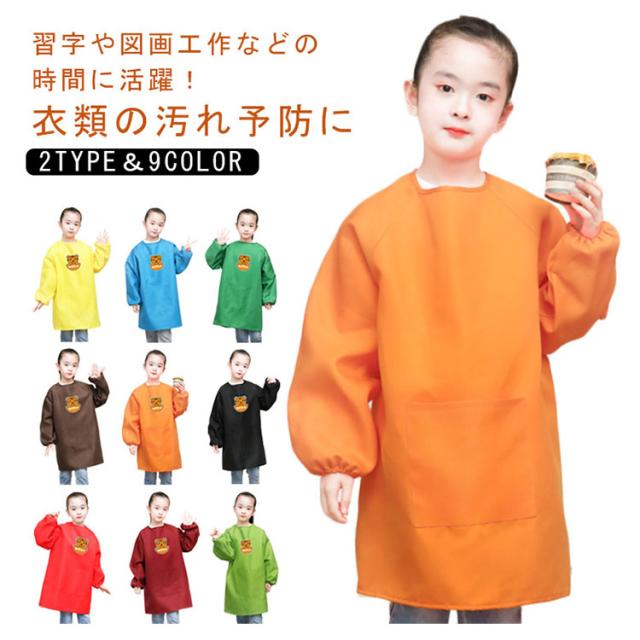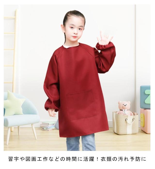 お食事 長袖 エプロン スモック スモック 子供服 トップス ポケット付き 遊び着 汚れ防止 図画工作 幼稚園 保育園 無地 習字 袖口ゴム キッズ 書道 図工 小学生 シンプル 撥水加工 単色 女の子 男の子 女児