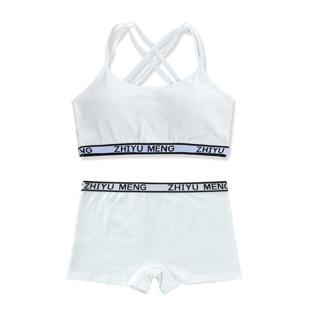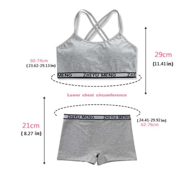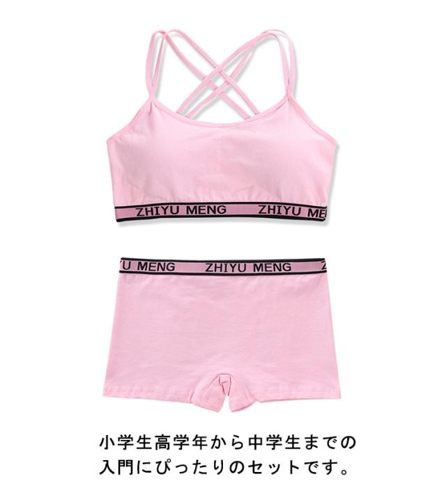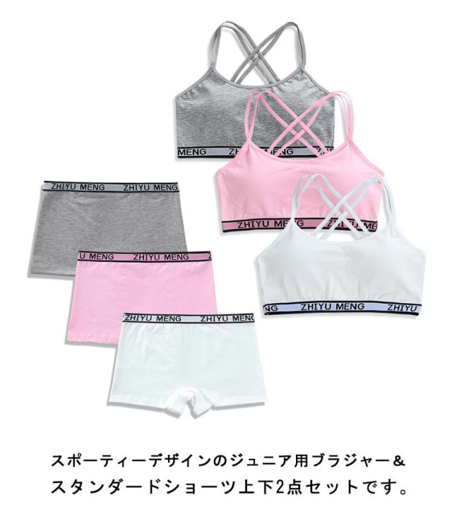 学生 ショーツセット 上下セット スポーツブラ ボクサーパンツ 高校生 ジュニアブラジャー 高校生 英字柄 ノンワイヤーブラ リボン ジュニア向け フィットネス シンプル ヨガ 運動 トレーニング ベストタイプ 子供 小学生