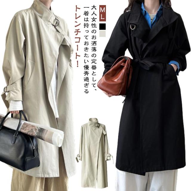 春 ガウンコート ロング スタンドカラー ロングコート 上着 アウター トレンチコート モッズコート 無地 長袖 レディース 秋 大きいサイズ カジュアル 羽織り 前開き 体型カバー スプリングコート ベージュ