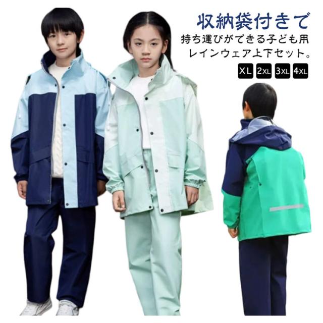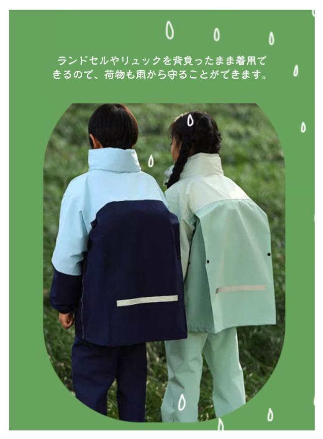 レインスーツ レインコート セパレート キッズ ジュニア かわいい 子供 キッズ ランドセル対応 男の子 反射材 おしゃれ 上下セット 雨具 配色 女の子 レインウェア 防水 撥水 軽量 ランドセル リュック 自転車 対応 雨の日 梅雨対策 通学 林間学校