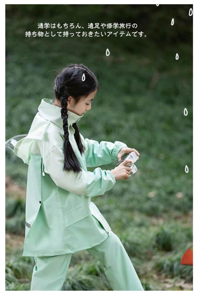 | 収納袋付きで持ち運びができる子ども用レインウェア上下セット。 ランドセルやリュックを背負ったまま着用できるので、荷物も雨から守ることができます。 雨をしっかりはじき、軽量で蒸れにくく、小さくたためる優れものです。 フード部分で視界を遮らないように、顔周りは透明になっています。 便利な収納袋付きで、突然の雨に備えて持ち運ぶことができます。 通学はもちろん、遠足や修学旅行の持ち物として持っておきたいアイテムです。 | |