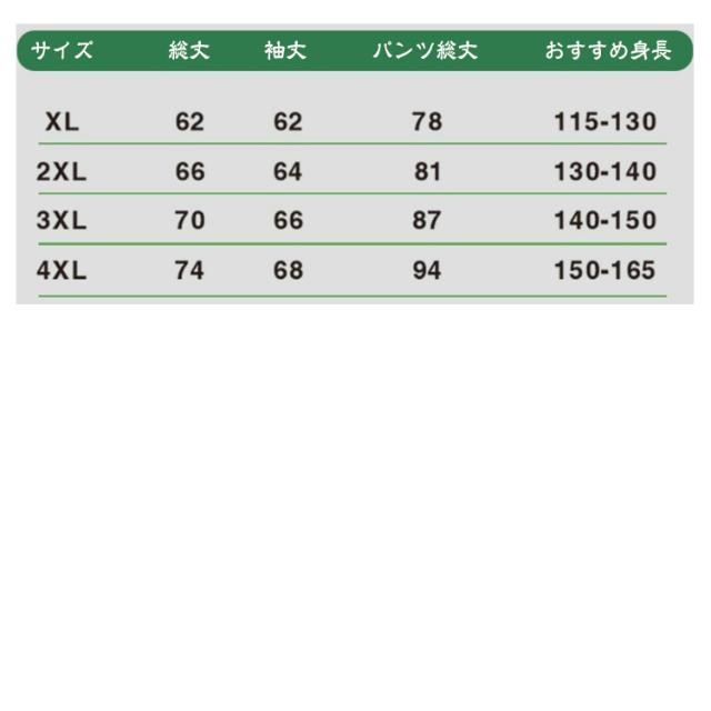 | サイズについての説明 | XL 2XL 3XL 4XL |
