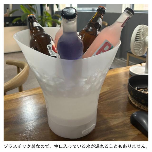 | Bluetoothでアイスペールを接続して音楽を再生できる、雰囲気満々の光るアイスペール。【Type-C充電式】 自宅でもお店の様なお洒落な空間になります。 豊富なカラーバリエーションなので 好きなカラーがきっと見つかります! また、Bluetoothでアイスペールを接続して音楽を再生できます。 プラスチック製なので、中に入っている水が漏れることもありません。 全体を水洗いできるので、衛生的です。 アウトドアシーンでは、キャンプ場やBBQの時に大活躍ワインクーラーやドリンククーラーとしてご利用ください。 | |