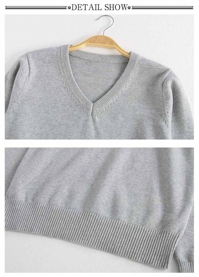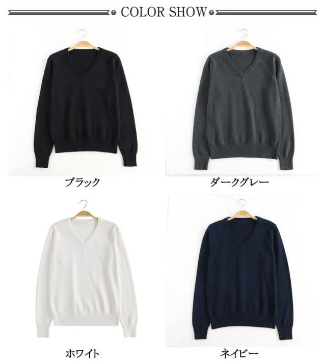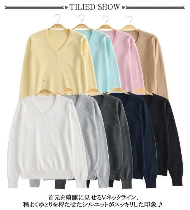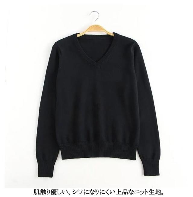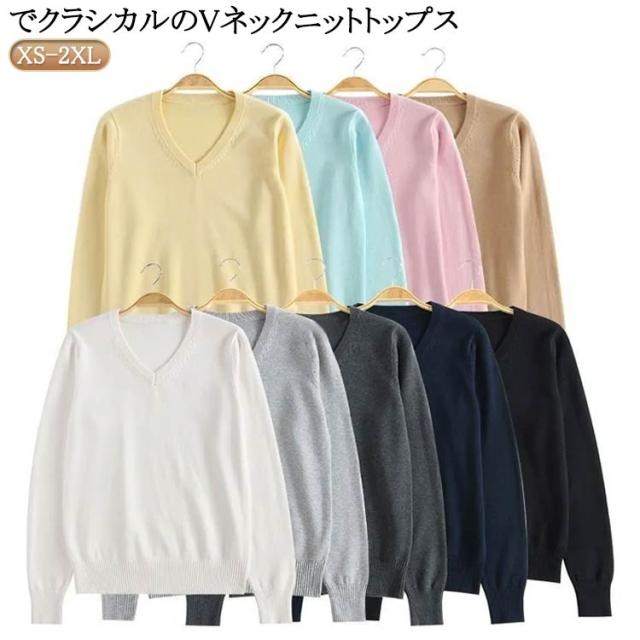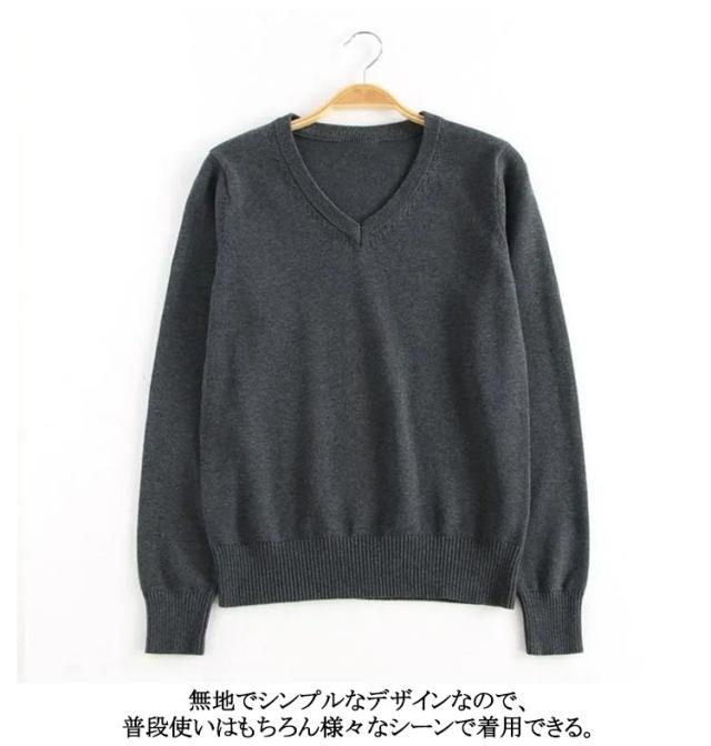 Vネック セーター ニットトップス スクールセーター 長袖 プルオーバー レディース 高校生 中学生 ニットソー 無地 長袖セーター 秋冬 カジュアル 通学 通勤 お出かけ 普段着 無地でシンプルなデザインなので 送料無料