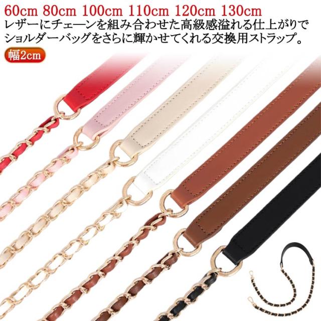 チェーン ショルダーベルト 【送料無料】ショルダーストラップ 付け替え用 白 ストラップ レザー 交換用 チェーンストラップ ショルダーバッグ 単品 斜めかけ 幅2cm バッグ 茶 ブラウン ホワイト ベージュ