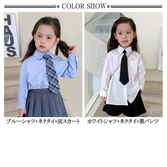 白シャツ 送料無料 セット 長袖 カッターシャツ キッズ ボタンダウン 100cm スカート ワイシャツ 男の子 女の子 送料無料 用 子供 ネクタイ 角襟 140cm 無地 白 ホワイト 付き 110cm 120cm 130cm シャツ 150cm 160cm 170cm フォーマル ウエア