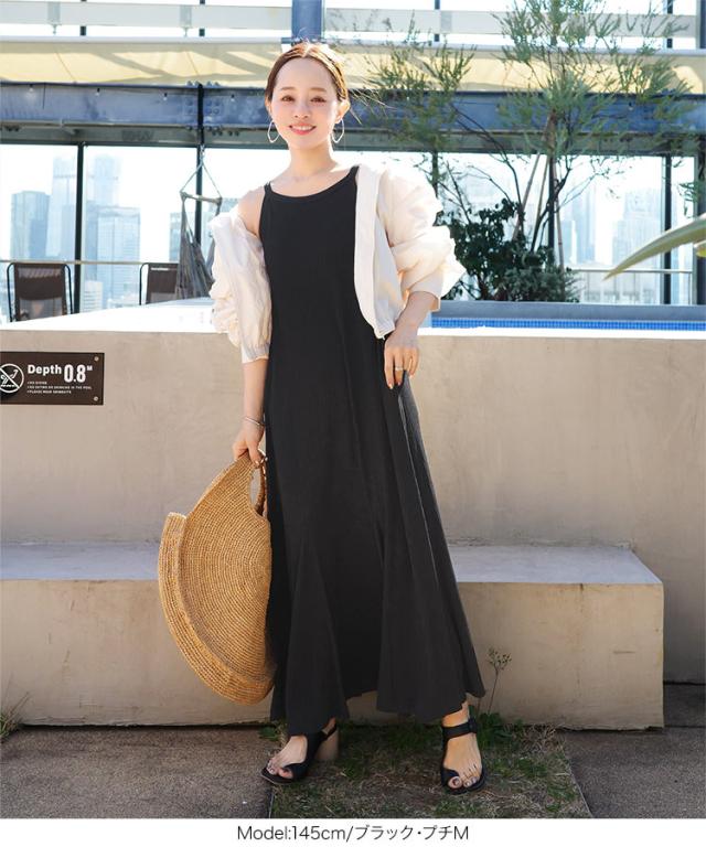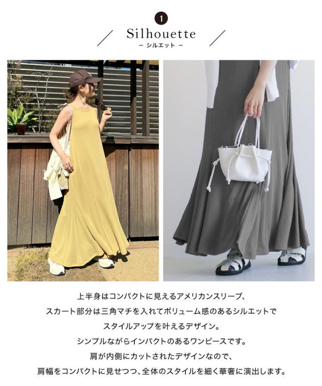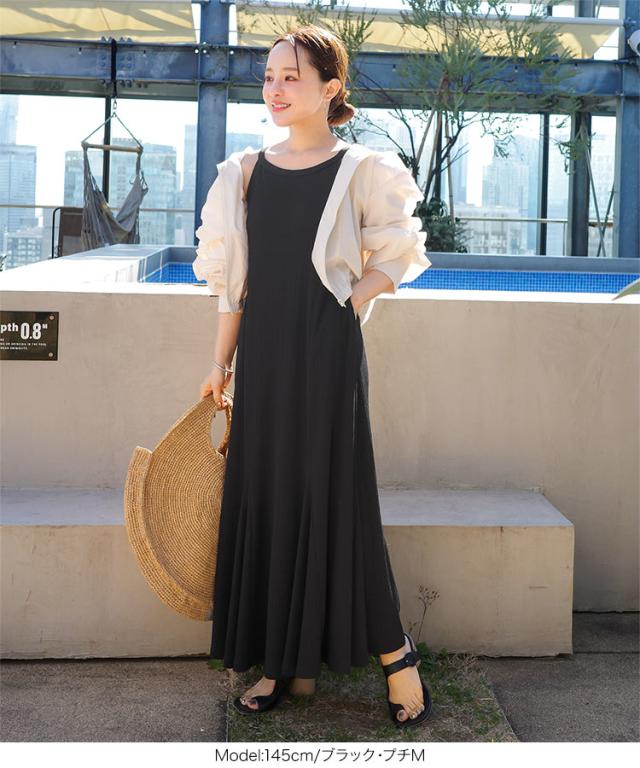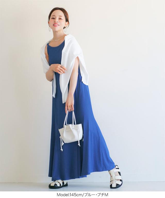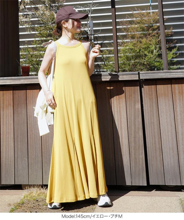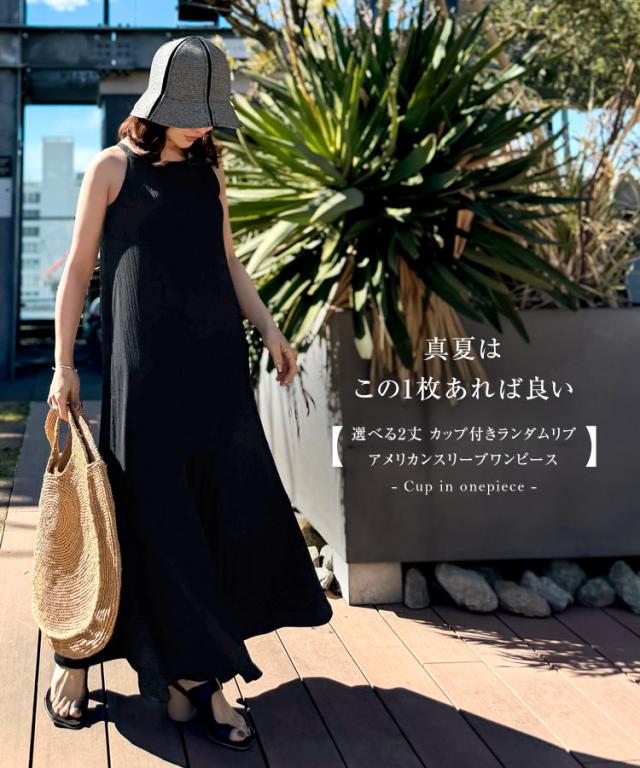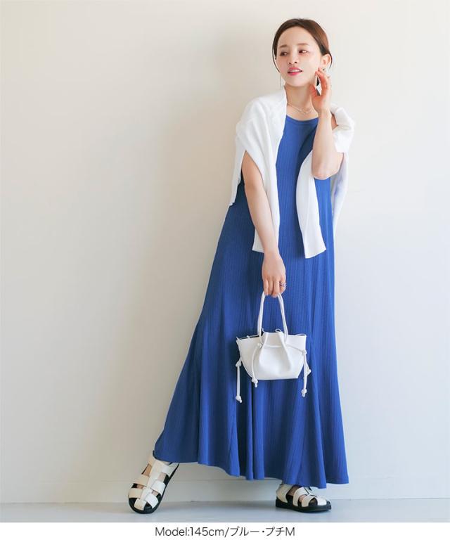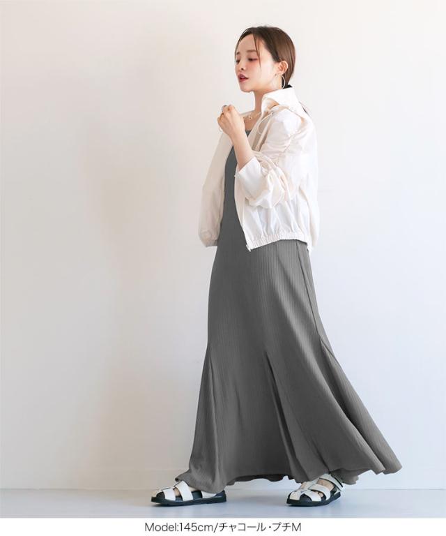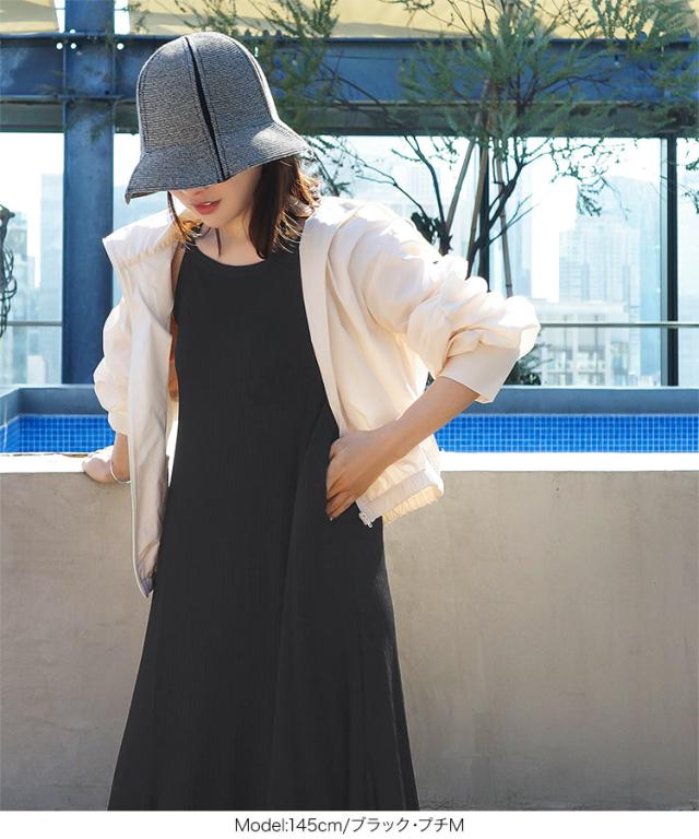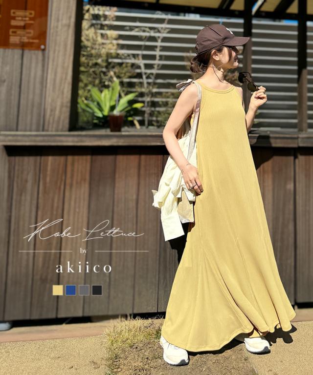 春新作 [ 田中亜希子さんコラボ ]選べる2丈 カップ付きランダムリブアメスリワンピース E3447 入荷済 レディース 20代 30代 40代 小柄 亜希子 あきこ akiico 低身長 プチ アキコ マキシワンピース マキシワンピ リブワンピ ヘルシー ア