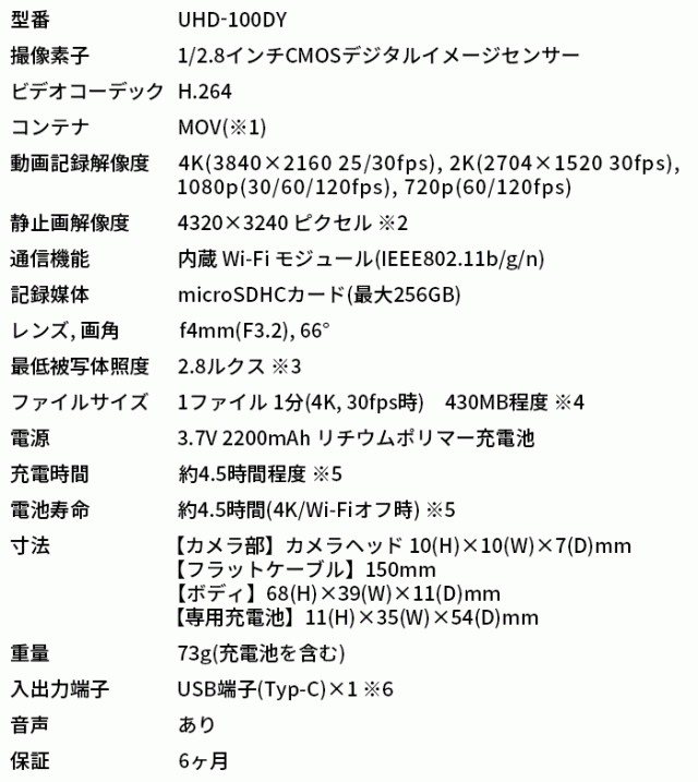 ■ UHD-100DY 4K録画対応基板(基盤)完成ユニット型Wi-Fi小型カメラ
