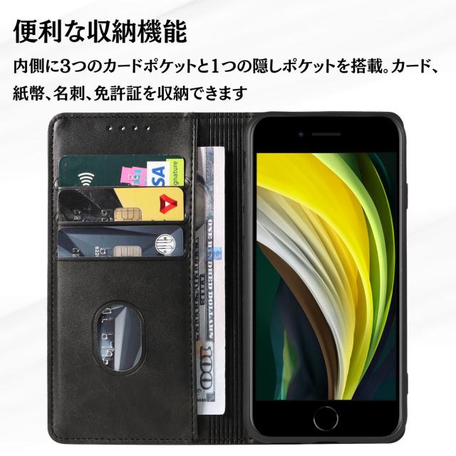 iPhone SE ケース 手帳型 iPhone SE2 第2世代 iPhone SE3 第3世代 iPhone 7 iPhone 8 PU レザー カバー マグネット式 スタンド 耐衝撃 軽量 高級感 カード 収納 シンプル おしゃれ ビジネス 全面保護 耐久 スマホケース スマートフォンケース iPhone7 iPhone8 iPhoneSE