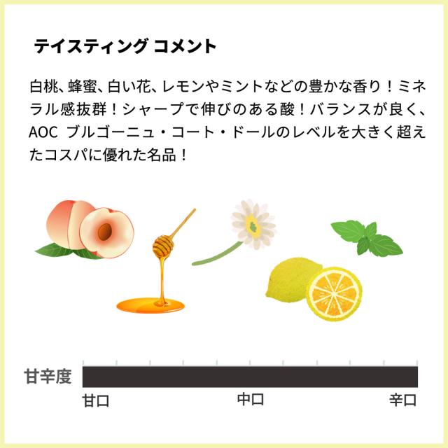 ![]() ■ぶどう品種:シャルドネ100% ■平均樹齢:55年 ■土壌:粘土石灰岩土壌 ■収穫:手摘み100% 年産僅か5824本のみの希少アイテム!有機農法&亜硫酸無添加or低亜硫酸を実現するムルソーの隠れた至宝! 今後、入手困難が予想される銘醸ドメーヌ・ルージョ! しかもINAO(原産地呼称委員会)によって2017年に新しく追加されたAOCブルゴーニュのさらに格上の村名AOC! 白桃、蜂蜜、白い花、レモンやミントなどの豊かな香り!ミネラル感抜群!シャープで伸びのある酸!バランスが良く、AOCブルゴーニュ・コート・ドールのレベルを大きく超えたコスパに優れた名品! |