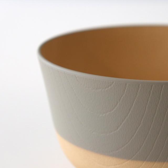 表面はさらさらとした手触りで、木目調のデザインがほどこされています。お手入れが手間な木製食器と比べて、樹脂製食器は扱いやすいのが特徴です。