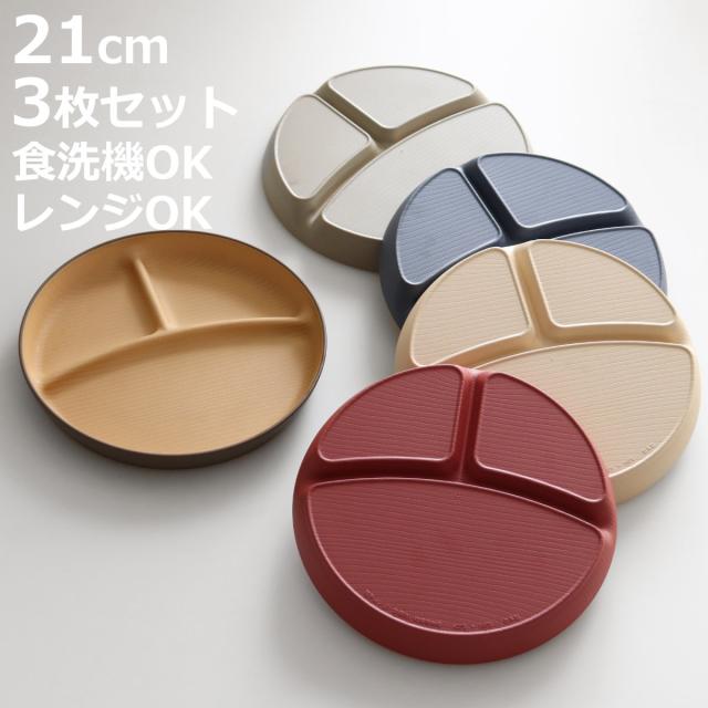 お子様が使いやすい仕切り付きプレート 21cm 同色3枚セット