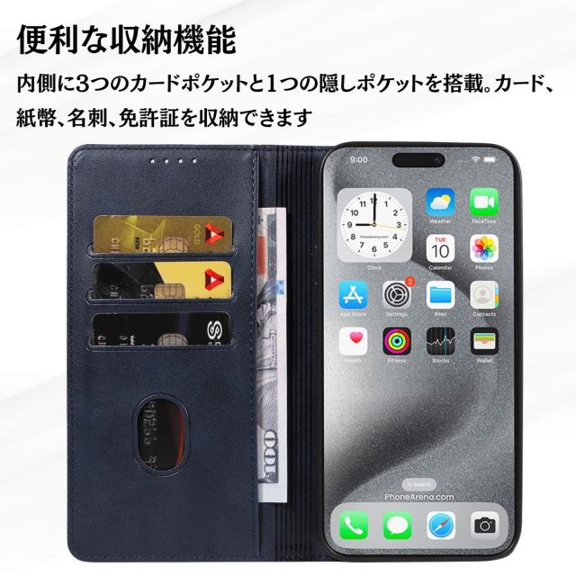 【カード収納】内側にはカード入れとフリーポケットがつき、名刺や定期券の収納に優れているアイフォン ケースです。普段の生活に便利をもたらします。