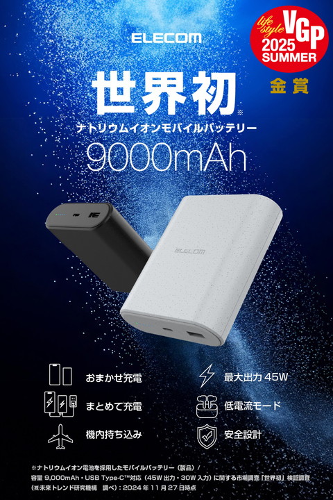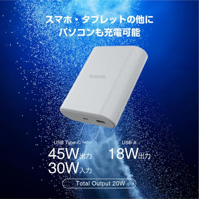 エレコム モバイルバッテリー ナトリウムイオン電池 9000mAh 45W USB パワーデリバリー Power Delivery USB Type-C入出力1ポート USB-A出力1ポート ライトグレー┃DE-C55L-9000LGY