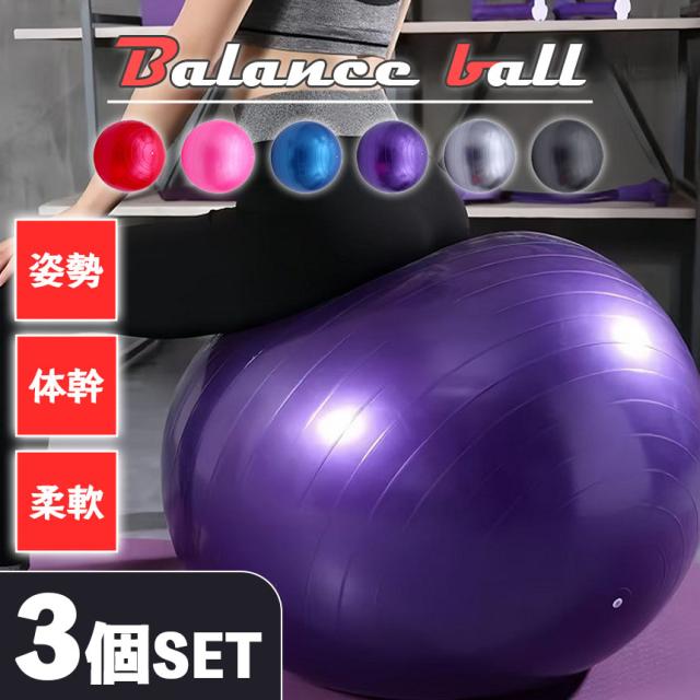 バランスボール ヨガボール ヨガ 3個セット 椅子 直径55cm ジムボール フィットネスボール 空気入れ付き 体幹 トレーニング エクササイズ 自宅 トレ 筋トレ ダイエット 姿勢 腰痛 対策 インナーマッスル 滑り止め アンチバースト 体幹トレーニング ダイエット器具 バランス