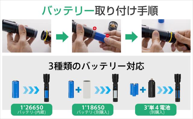 特徴:伸縮式, ポータブル, 充電可能, 耐衝撃, ハイパワー