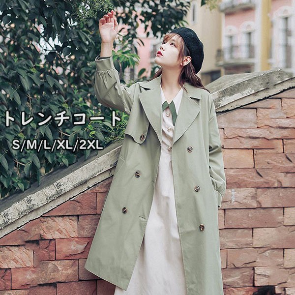 アウター トレンチコート レディース スプリングコート ミモレ丈 春 秋コート 薄手 ゆったり トレンチコート ラグランスリーブ 韓国風 秋服 スプリングコート カジュアル S M L XL 2XL グリーン