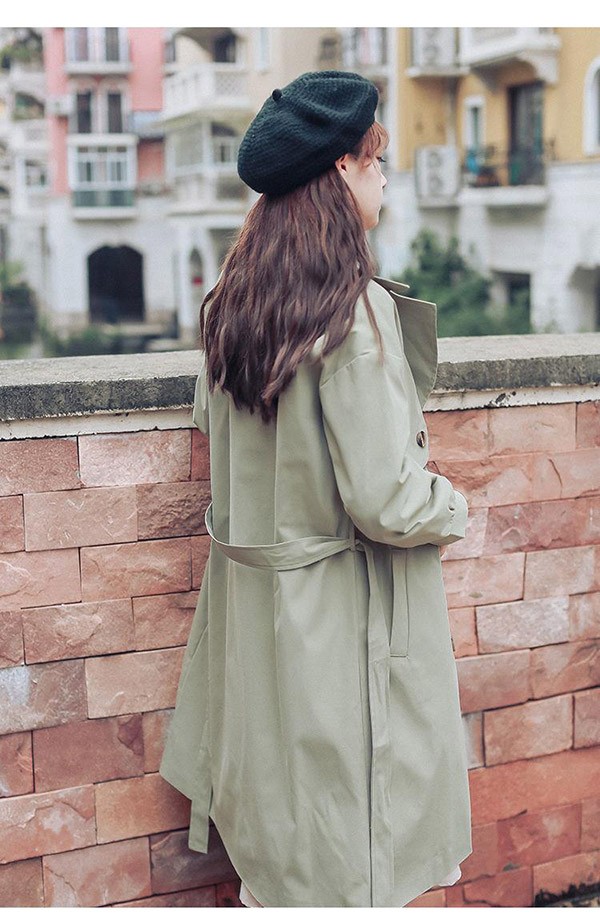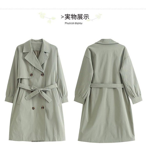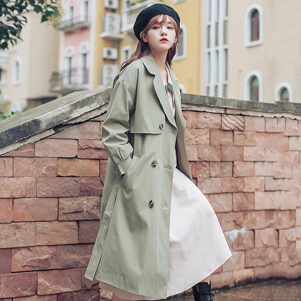 アウター トレンチコート レディース スプリングコート ミモレ丈 春 秋コート 薄手 ゆったり トレンチコート ラグランスリーブ 韓国風 秋服 スプリングコート カジュアル S M L XL 2XL グリーン dg019m5