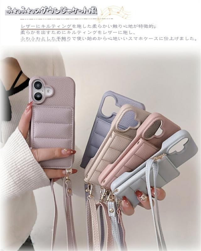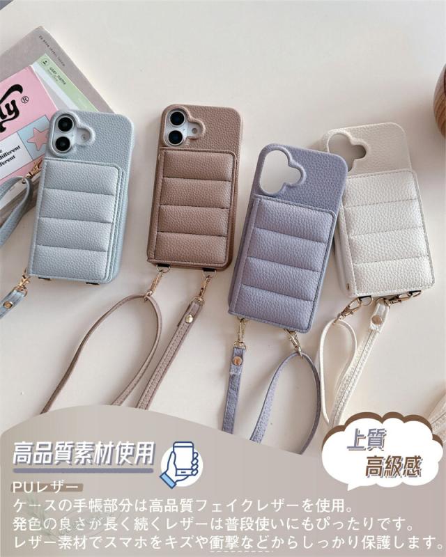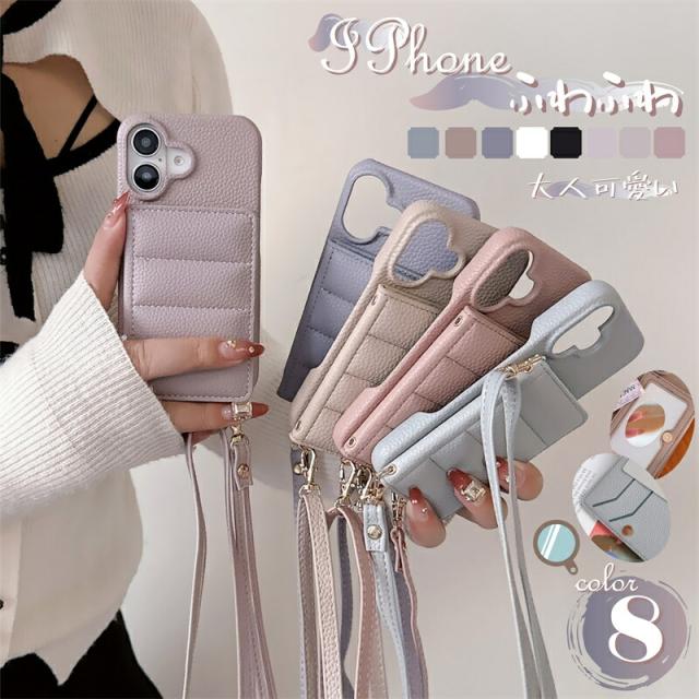 ぷくぷく「鏡」 iPhone16 ケース ショルダー カード 背面 ぷっくり アイフォン14 アイホン16 ショルダーケース iPhone16Proケース 15 プロマックス アイホン iPhone 16 15 14 13 12 Pro Max Plus 13mini 12mini se3 se2 スマホケース 韓国 ミラー付き ダウンジャケット