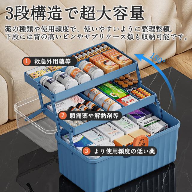 救急箱 薬箱 超大容量 おしゃれ 3段収納 北欧 かわいい 家庭用 収納 救急ボックス 小物入れ 薬ケース プラスチック 家庭用 お薬ボックス