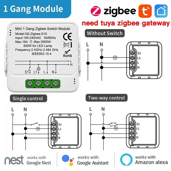 TNCE Tuya スイッチ ライト カーテン調光器 WIFI Zigbee、スマート DIY MINI モジュール、双方向制御ブレーカー、音声 Alexa Google Home 付き