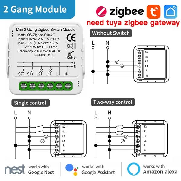 TNCE TUYA WIFI/Zigbee スイッチライトカーテン調光器スマート DIY ミニモジュール、2 ウェイ制御ブレーカー、音声 Alexa Google ホーム付き