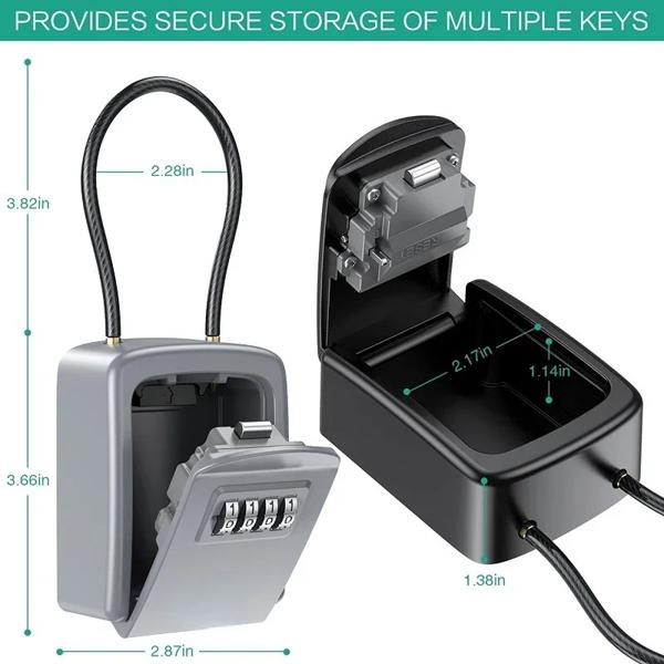 キーロックボックス 4 桁コンビネーションキー金庫 防水キー保管ロックボックス 取り外し可能なチェーン付き セキュリティ盗難防止
