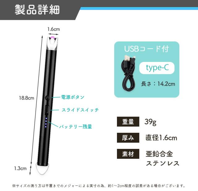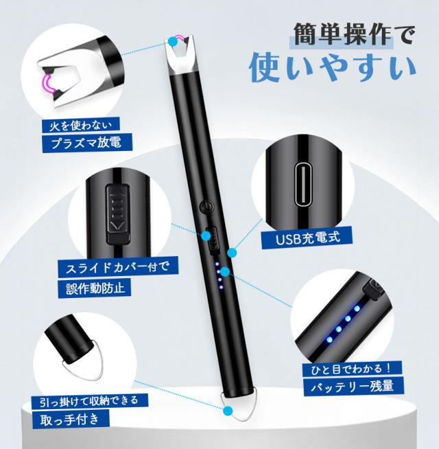 電子ライター プラズマライター 強風で消えない ライター USB充電式 ガス オイル 不要 点火用ライター キャンドル 花火 ろうそく アウトドア お香 花火 キャンプ 蚊取り線香 防風 USB 充電式 アークライター エコ シンプル