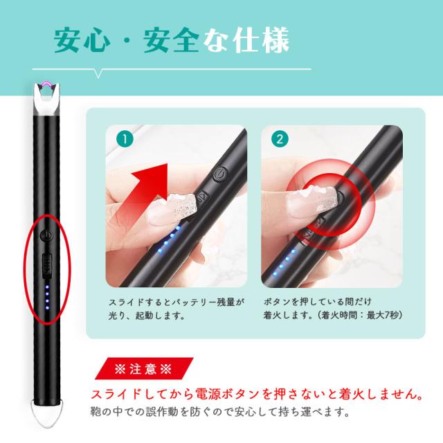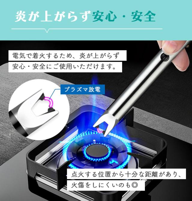 ●ガス・オイル交換不要! 電子ライター●まだライターを使って火をつけていますか?ガス・オイルの交換不要、風に強い、安全なライターがあります。point【炎が上がらず安心・安全】電気で着火するため、炎が上がらず、安心・安全にご使用いただけます。また柄が長いので点火する位置から十分な距離があり、火傷をしにくいのも◎