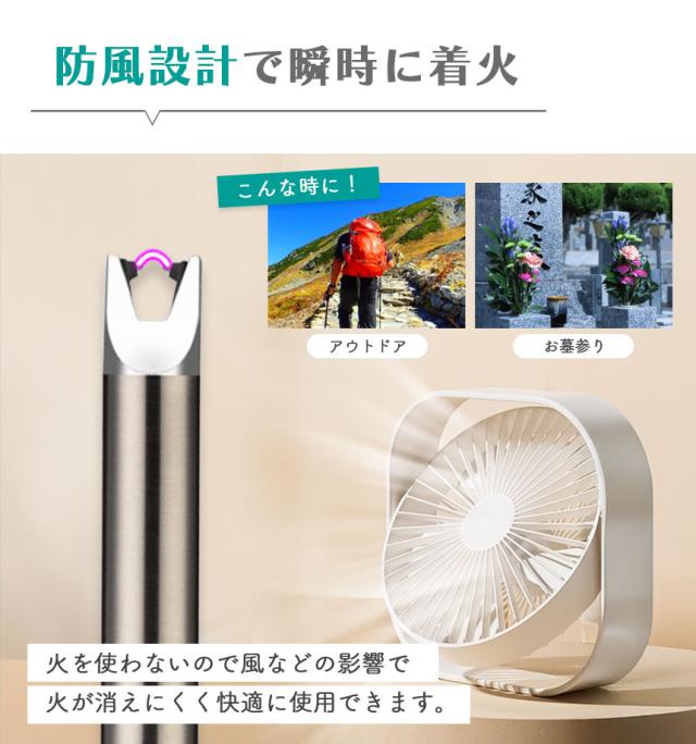 屋外でも風を気にせず点火できます。アウトドアやお墓参りなどにも◎