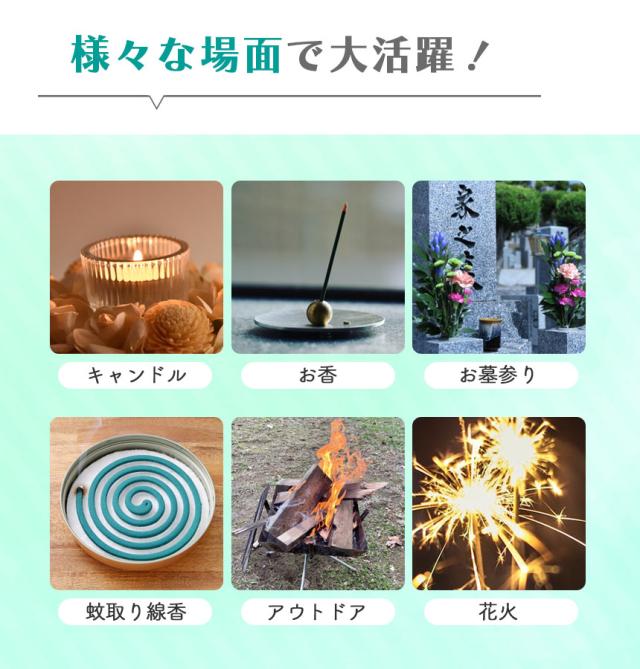 キャンドル、お香、お墓参り、蚊取り線香、アウトドア、花火など