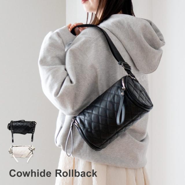 ※キーワード:ロールバッグ ショルダーバッグ 牛革 レディース 斜めがけ 大人 本革 キルティング ブラック アイボリー レザーバッグ 横型 ショルダー 小さめ 肩掛け 斜め掛け